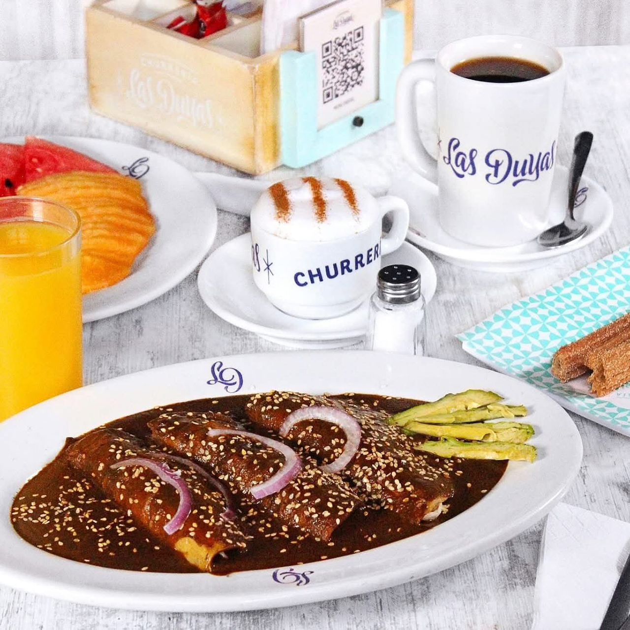 Donde ComerRestaurantes Churrería Las Duyas Restaurante especializado en churros artesanales, su menú incluye churros rellenos de variedad, café, chocolate y una extensa variedad de toppings. Pzla. Hidalgo 5, Centro, Amealco de Bonfil, Qro. Lunes a domingo08:00 a 21:30 horas 448-278-0692 ---- Facebook Instagram